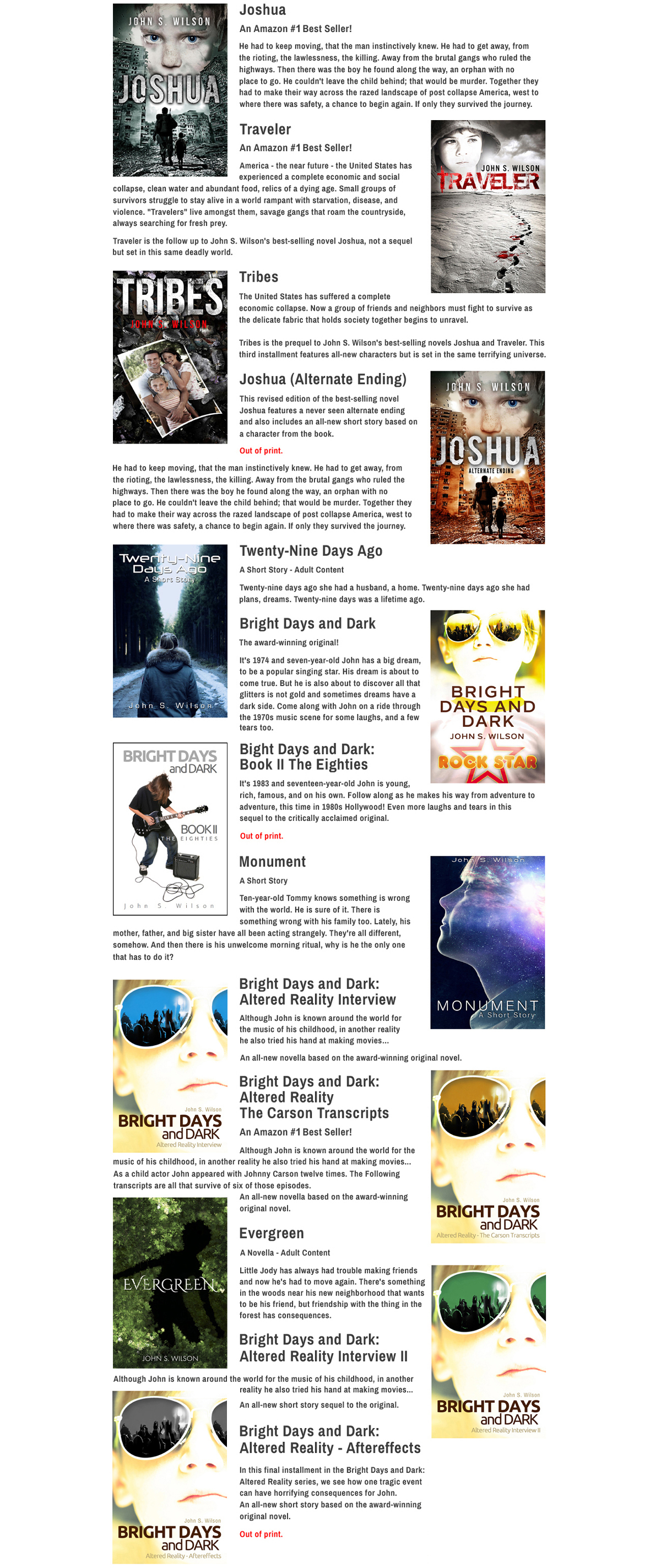 JOHN S. WILSON - NOVELS AVAILABLE EXCLUSIVELY ON AMAZON